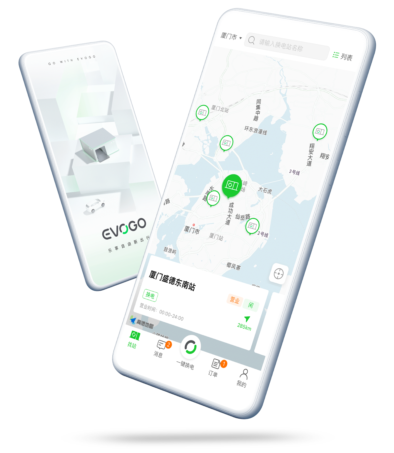 초코-SEB를 장착한 차량은 전기 리퓨얼링을 위한 충전과 배터리 교체를 지원합니다. 기존의 가정용 충전과 급속 충전이 결합된 EVOGO는 완벽한 리퓨얼링 솔루션을 제공합니다.